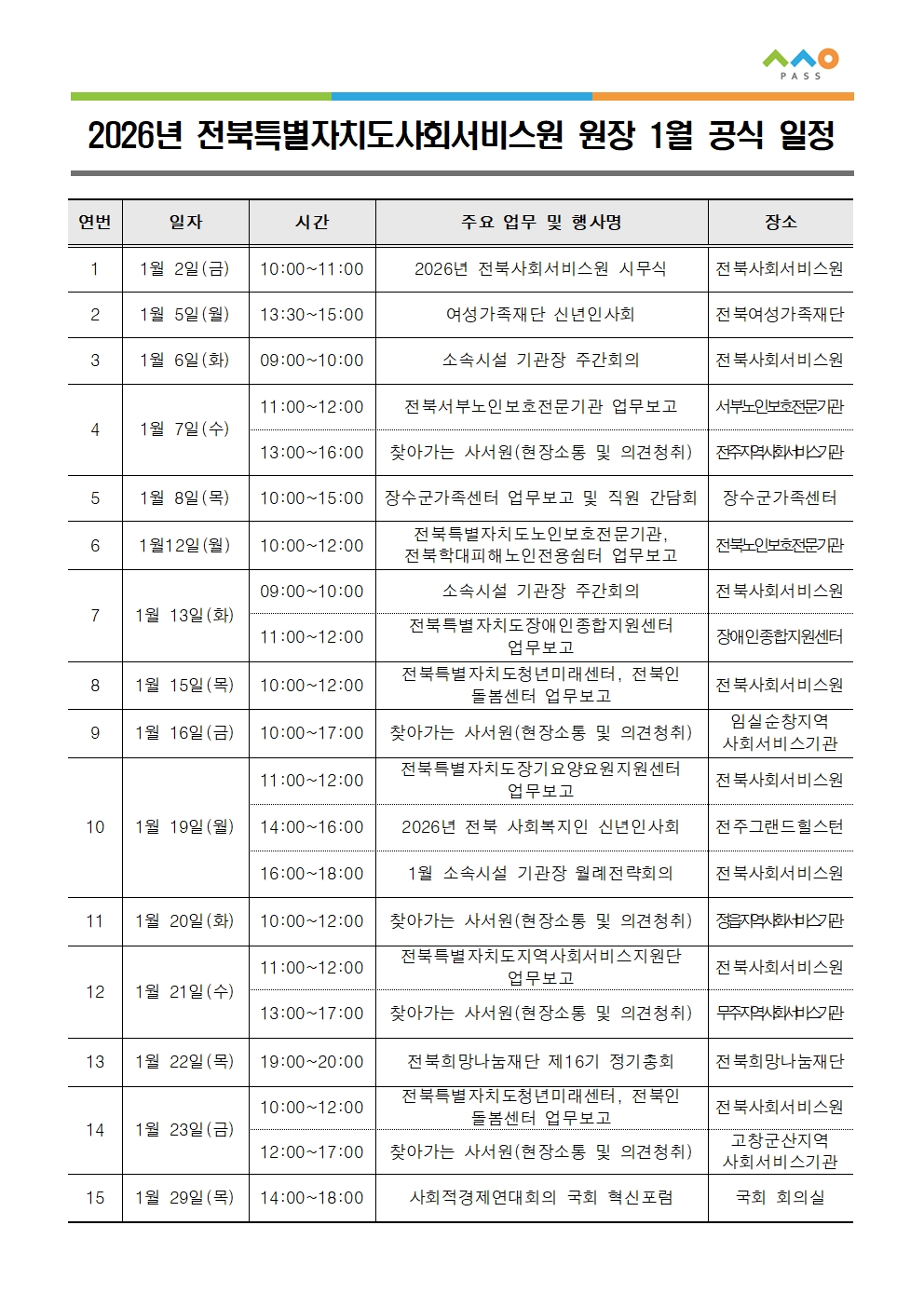 [공고 제 2026-005호] 2026년 1월 원장 공식 일정