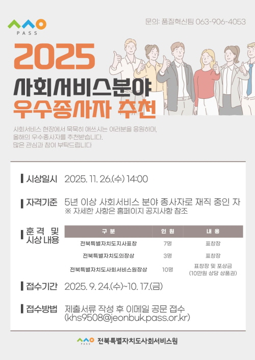 현장에서 헌신해주시는 사회서비스 종사자분들의 노고를 인정하고 격려하기 위해 2025년 사회서비스 분야 우수종사자 시상을 실시합니다.