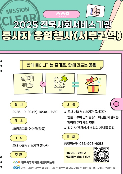 2025년 전북특별자치도사회서비스기관 종사자 응원행사(서부권역) 참여 안내