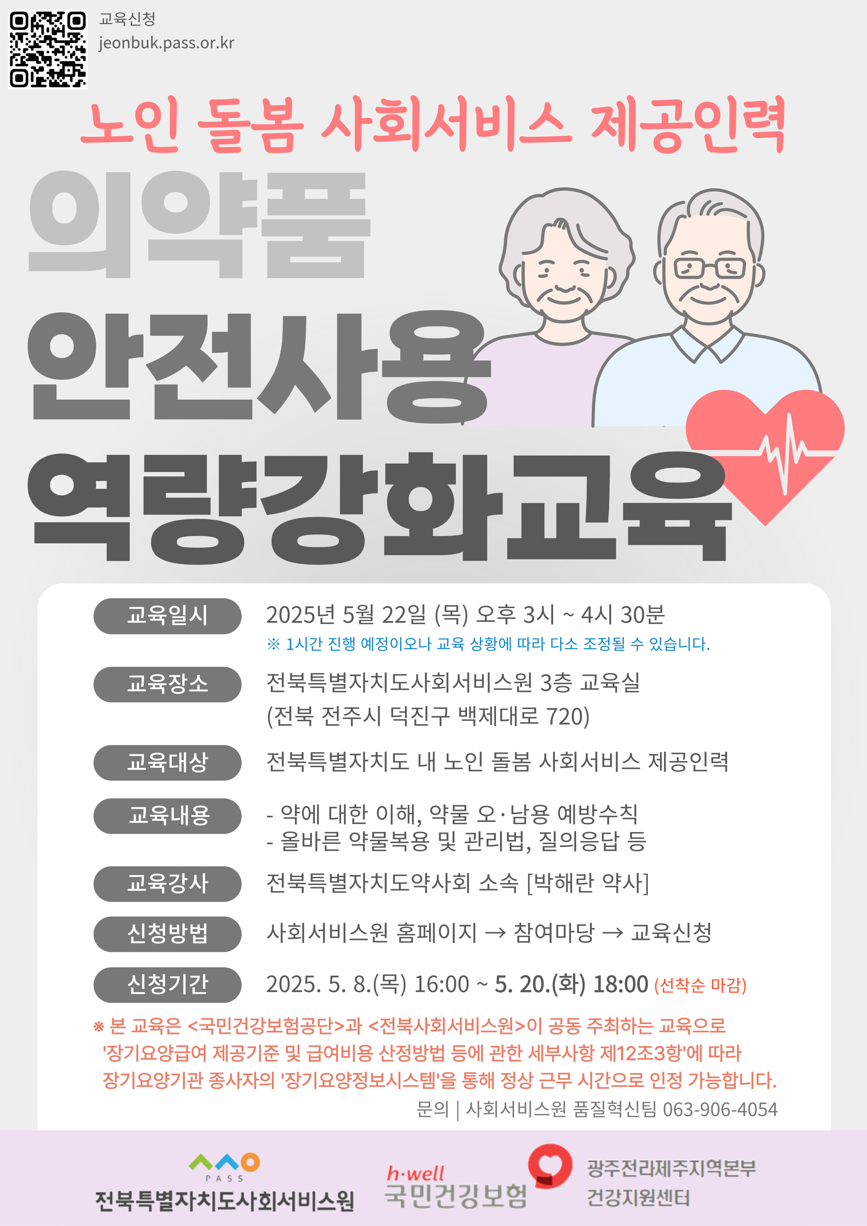 - 교육대상 : 전북특별자치도 내 노인 돌봄 사회서비스 제공인력