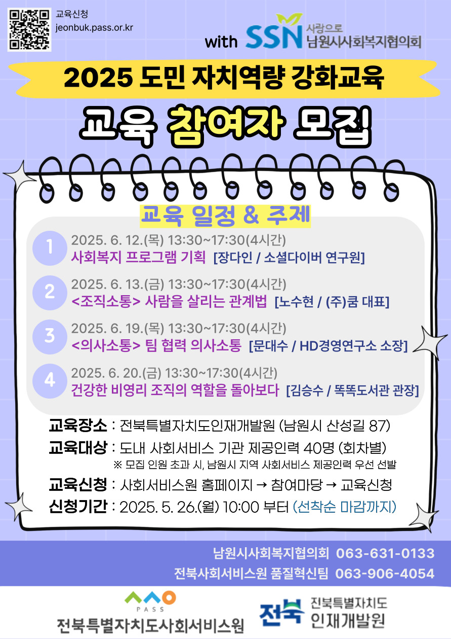 - 교육장소 : 전북특별자치도인재개발원 203호 강의실