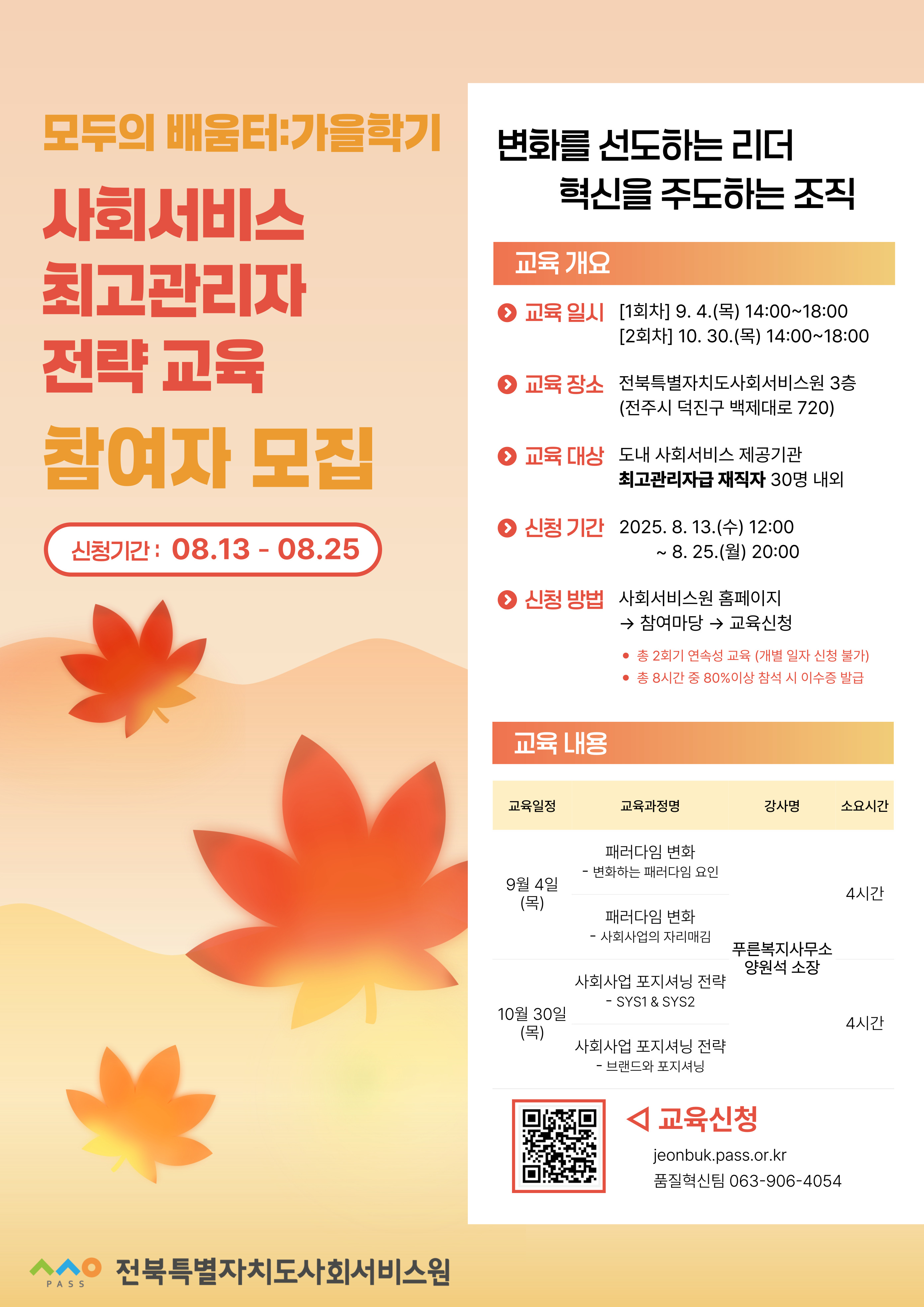 [붙임2](전북사회서비스원) 모두의 배움터 가을학기_사회서비스 최고관리자 전략 교육 참여자 모집 안내 포스터.jpg