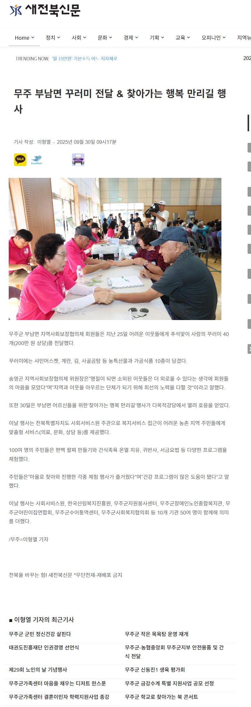 [2025-09-30] 무주 부남면 꾸러미 전달, 찾아가는 행복 만리길 행사