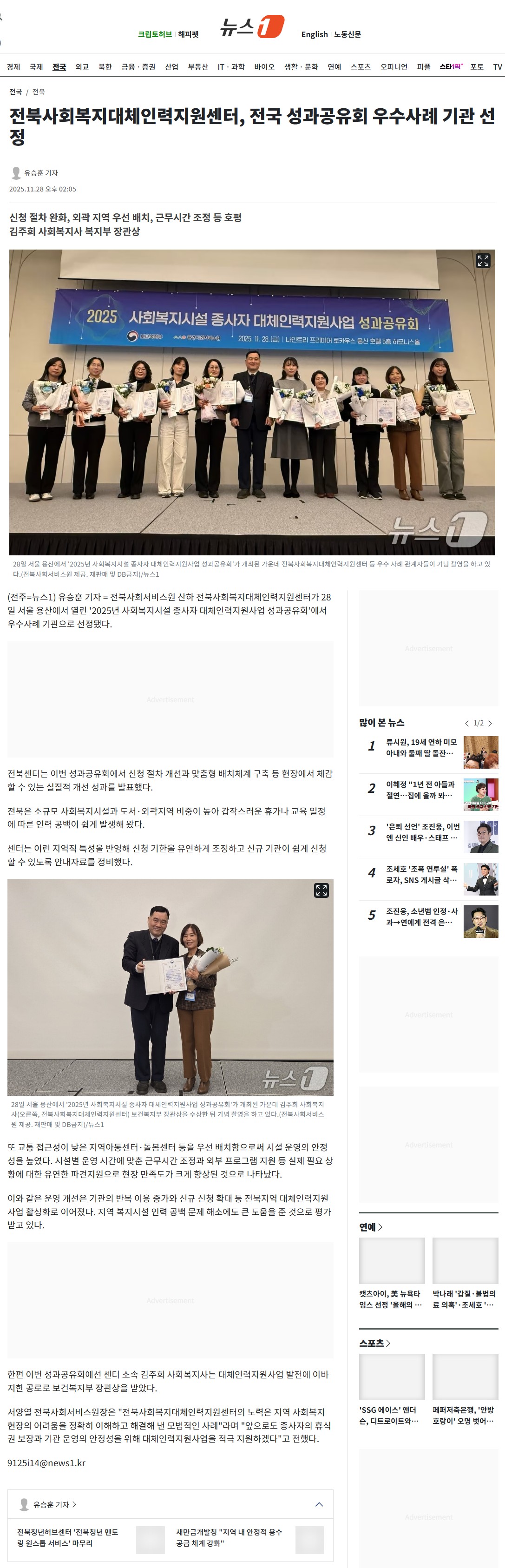 [2025-11-28] 전북사회복지대체인력지원센터, 전국 성과공유회 우수사례 기관 선정