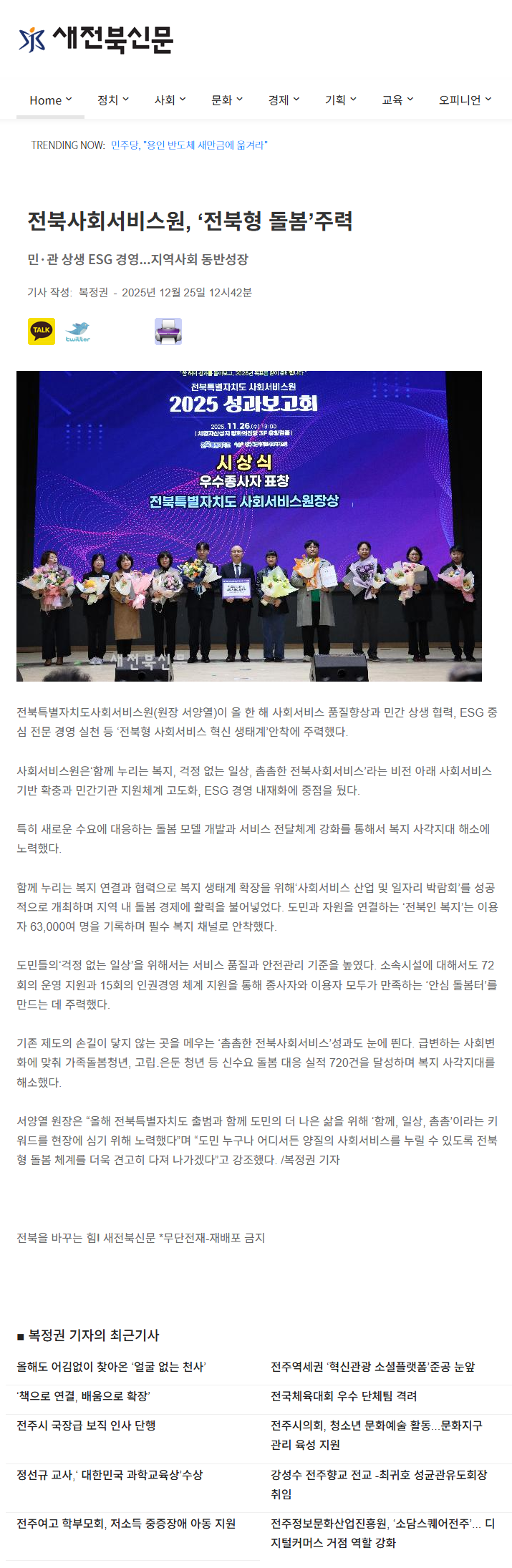 [2025-12-25] 전북사회서비스원, '전북형 돌봄' 주력