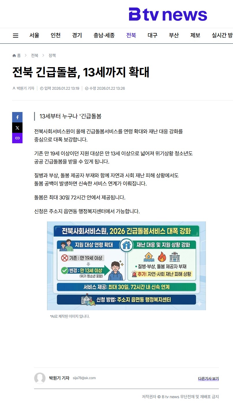 [2026-01-22] 전북 긴급돌봄, 13세까지 확대