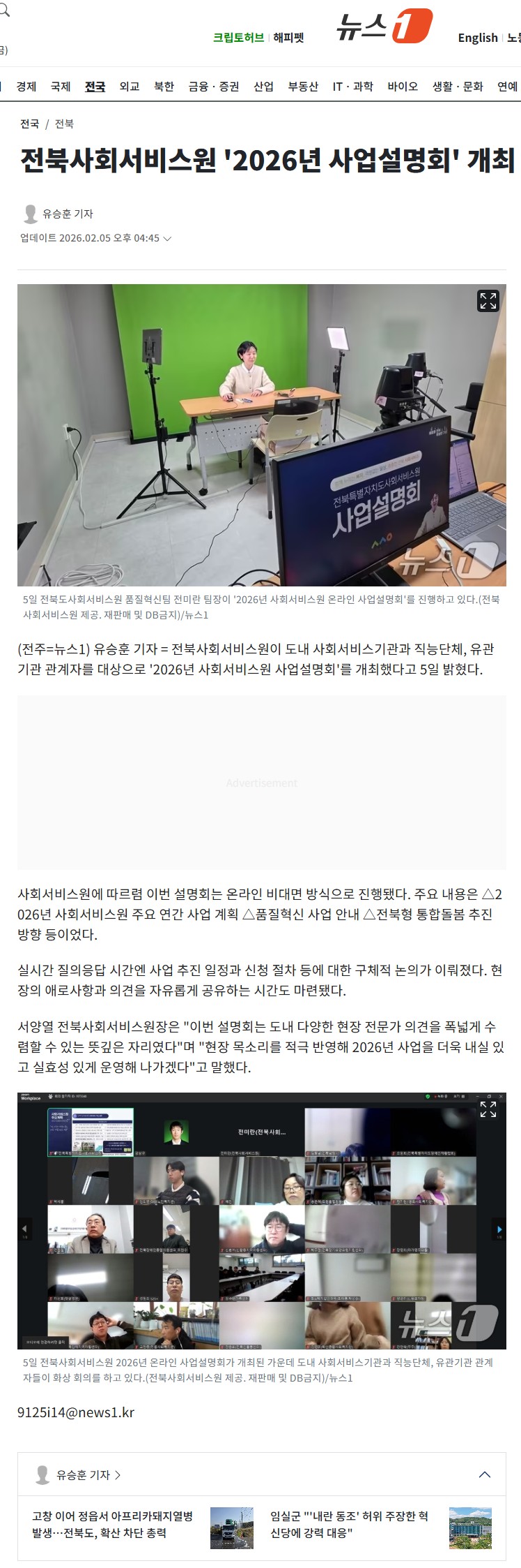 [2026-02-05] 전북사회서비스원, '2026년 사업설명회' 개최