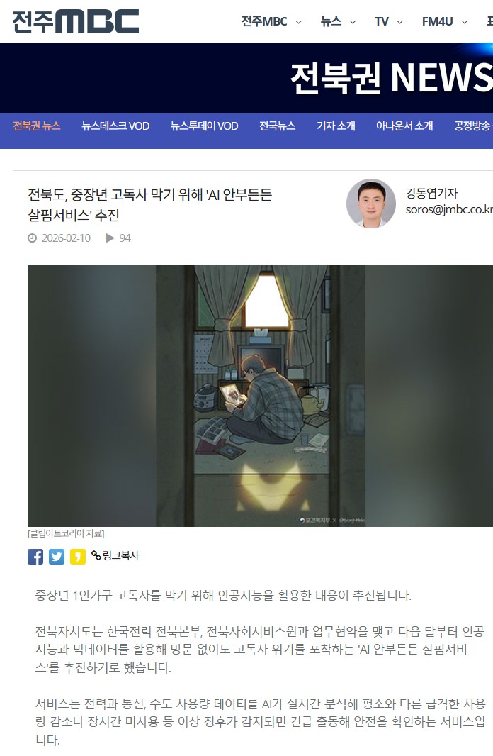 [2026-02-10] 전북도, 중장년 고독사 막기 위해 'AI 안부든든 살핌서비스' 추진